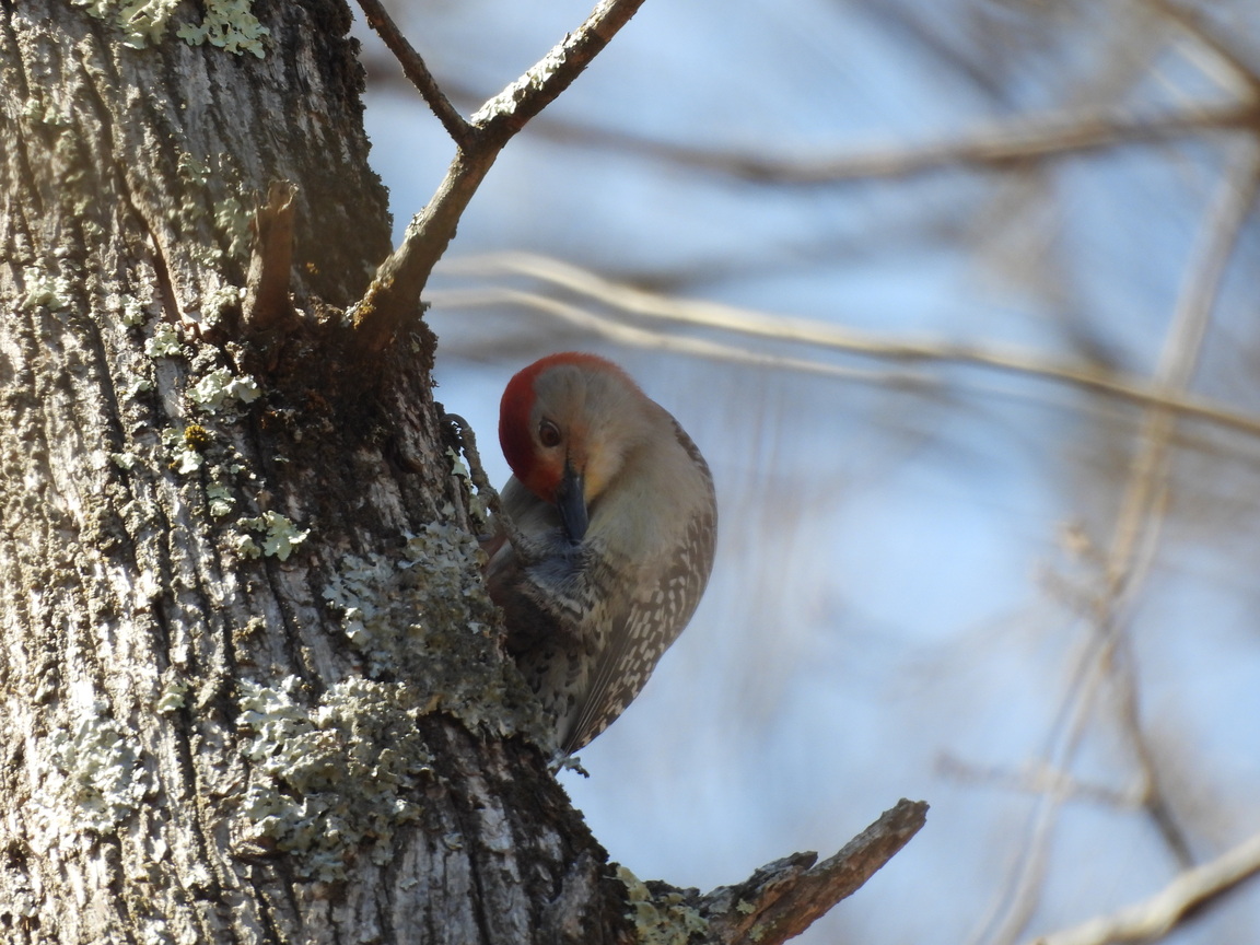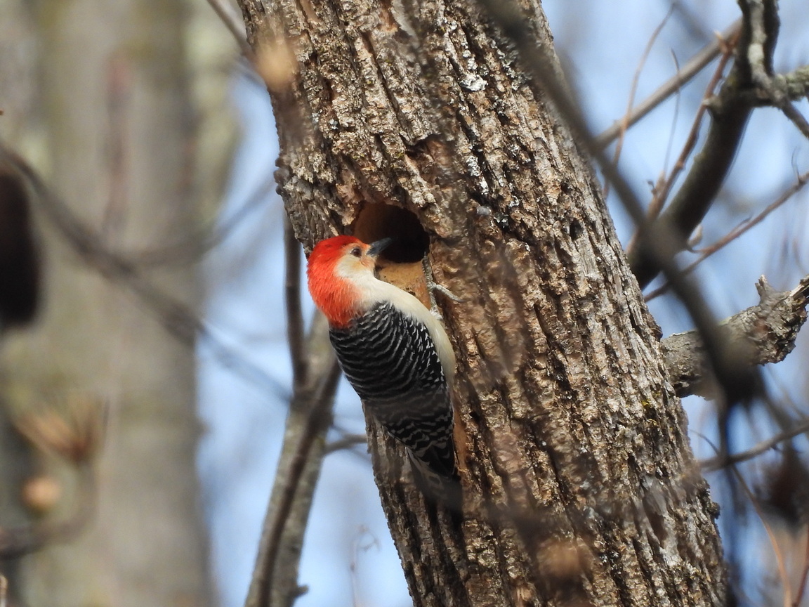 female cardinal 2 red bellied fella hairy following pileated holes pileated proud pileated flying away