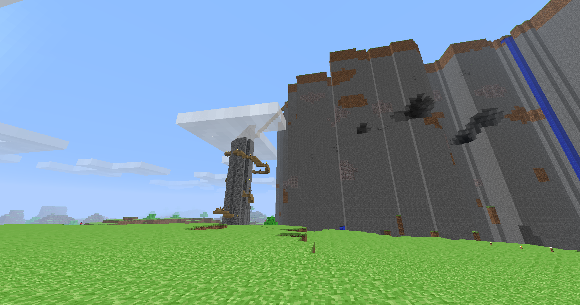 Today's project, which I basically made up on a whim, was to create a means to reach the TOP of the monolith (the common name for the errored chunks behind my house that form a plateau all the way up to build height).