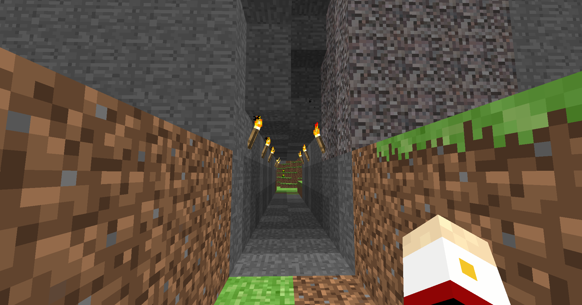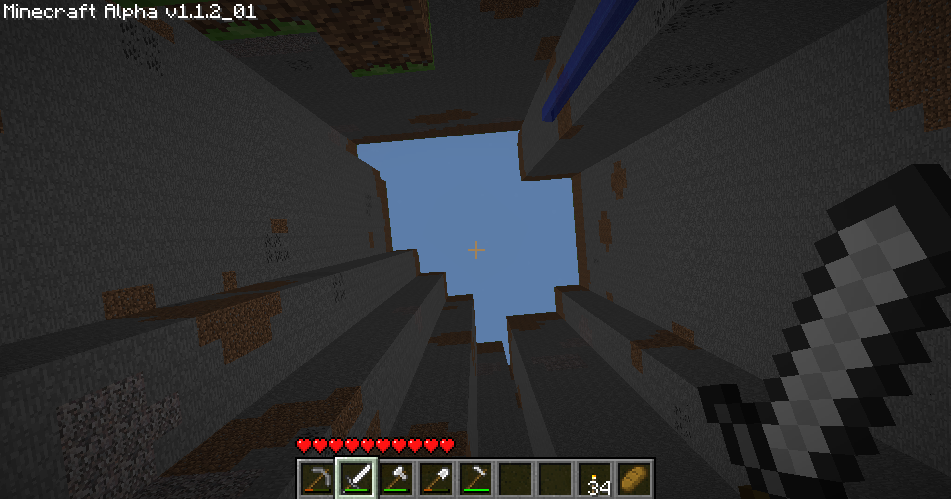 At this point I decided to call it a day. After such little progress, that may seem silly, but this did take me a while! Alpha is a slower pace compared to modern Minecraft. Admittedly not that slow, though. I have done barely anything today. Here's the problem, dear readers: I tunnelled through to the little hidden enclave, eager to start building... but I sort of forgot to come up with an idea of what to build. Oops.